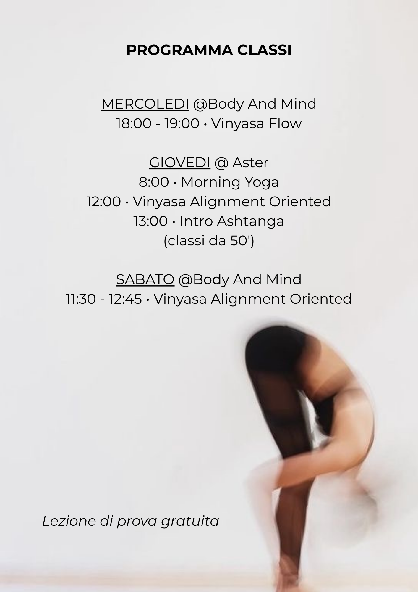 presso Baliyoga con un focus specifico sugli allineamenti. Sono certificata CSEN/CONI.